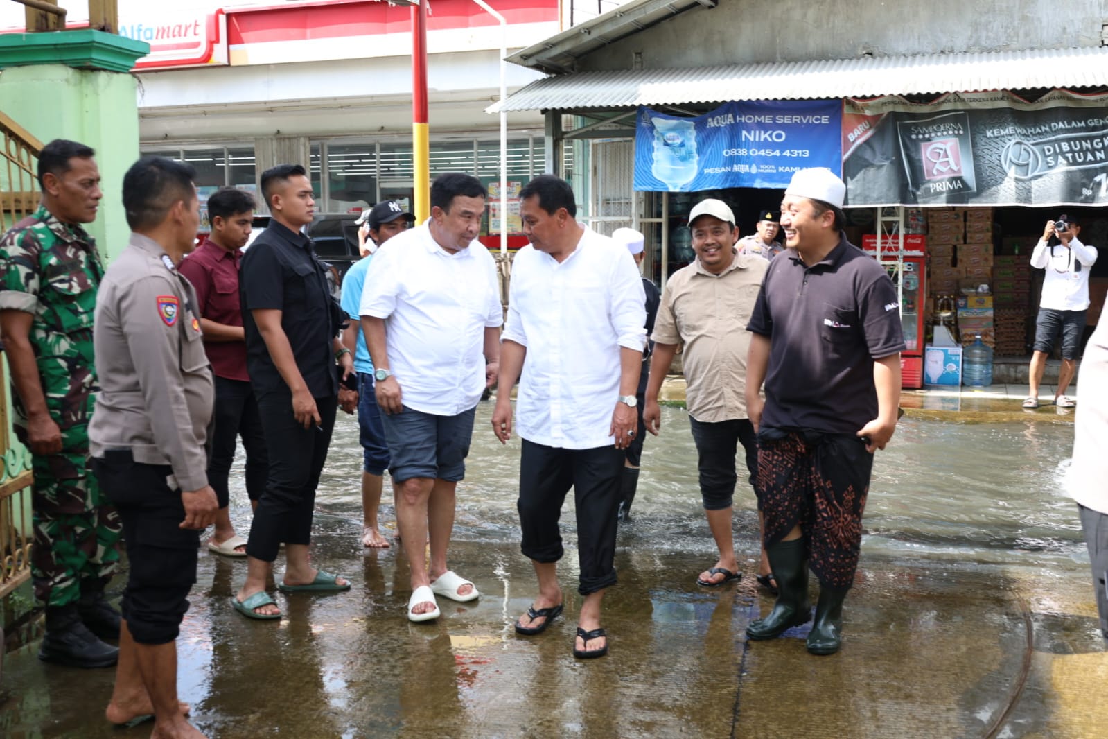 Kujungan itu, Bupati Tangerang Moch. Maesal Rosyid dan nengok langsung ke tempat banjir.