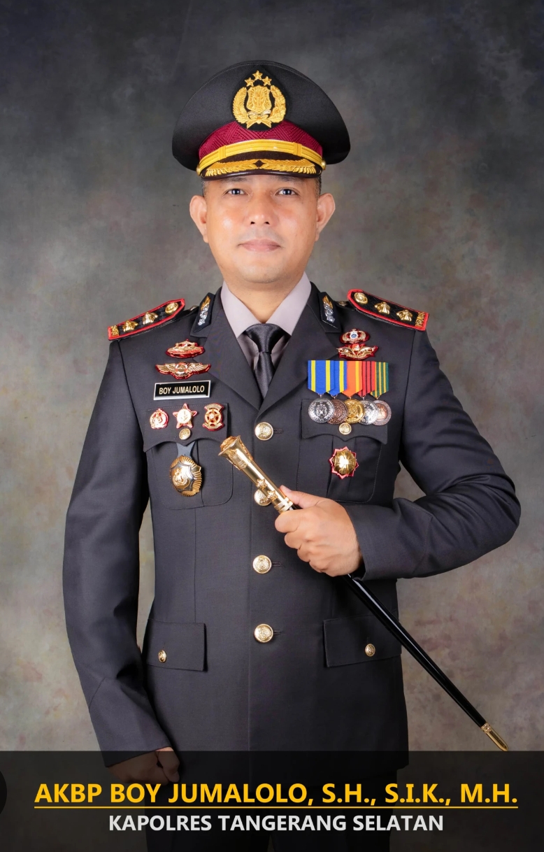AKBP Boy Jumalolo, SH, SIK, MH  resmi dilantik sebagai Kapolres Tangerang Selatan, menggantikan  AKBP Victor DH Inkiriwang, SH, SIK, M.Si.  yang mendapat promosi jabatan sebagai Kabag Binkar Biro SDM Polda Metro Jaya.