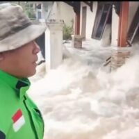 “Hujan, hujan deras sekali”, ujarnya Robi motor NMAX hitam.